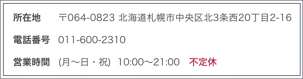| 所在地 | 〒064-0823 北海道札幌市中央区北3条西20丁目2-16 |